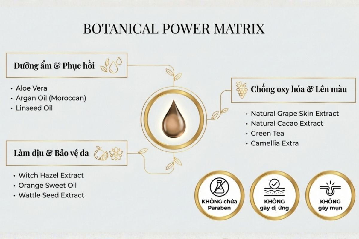 Khi người dùng tìm hiểu về Black Magic Tan Việt Nam, một điểm rất dễ tạo niềm tin là định hướng thành phần sạch, kết hợp các chiết xuất hỗ trợ dưỡng ẩm, làm dịu và nâng trải nghiệm bề mặt da. Điều này đặc biệt quan trọng với người phải chuẩn bị da trước thi đấu trong cường độ cao.