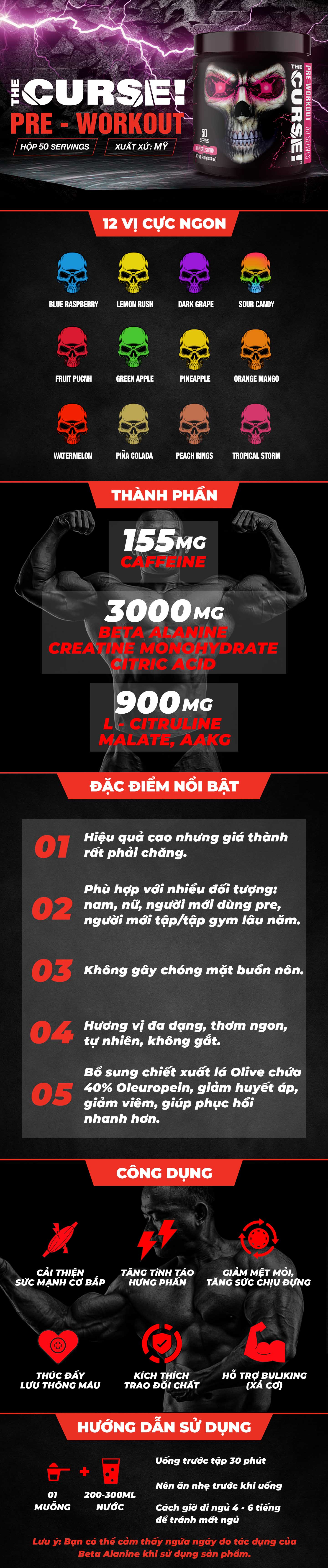 - The Curse là một trong những sản phẩm tăng sức mạnh thúc đẩy năng lượng tập luyện vô cùng mạnh mẽ.