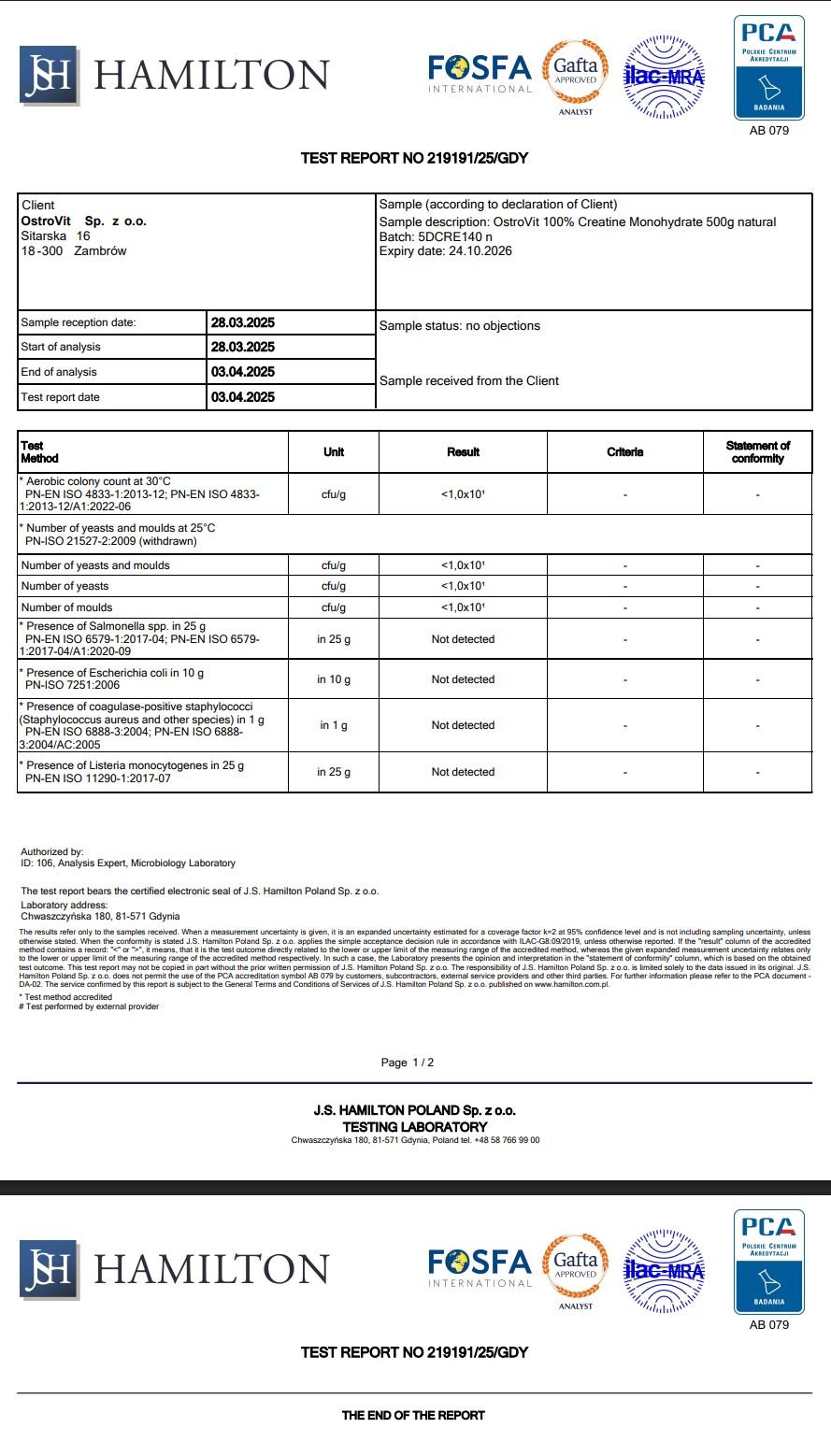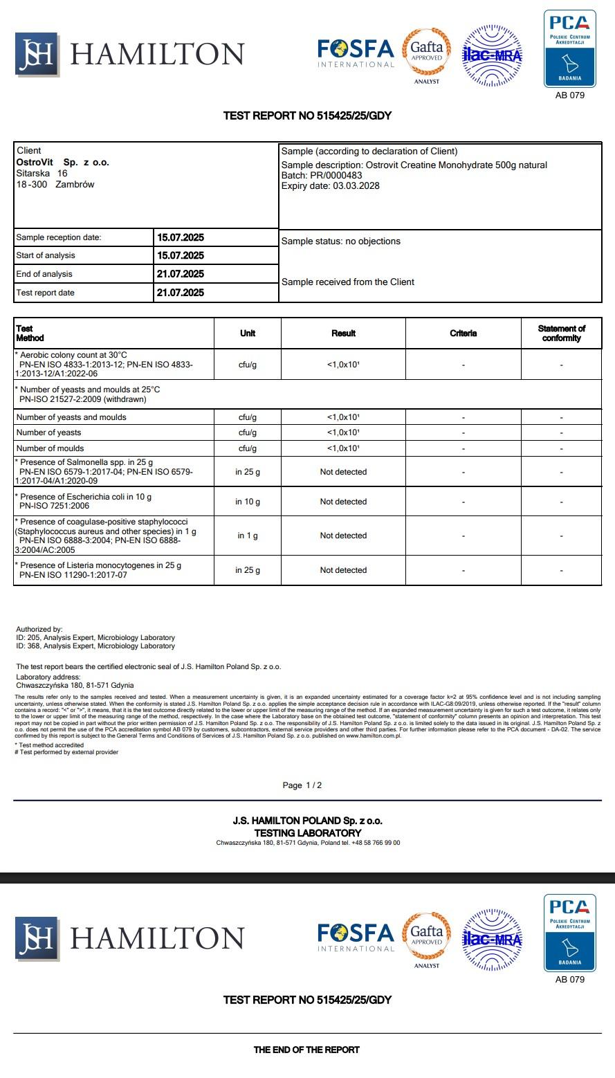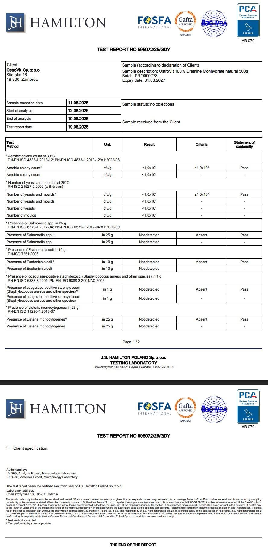 . Third-party tested - Kiểm định độc lập tại phòng thử nghiệm J.S Hamilton Ba Lan, được cơ quan quốc gia PCA và tổ chức quốc tế ILAC-MRA công nhận.