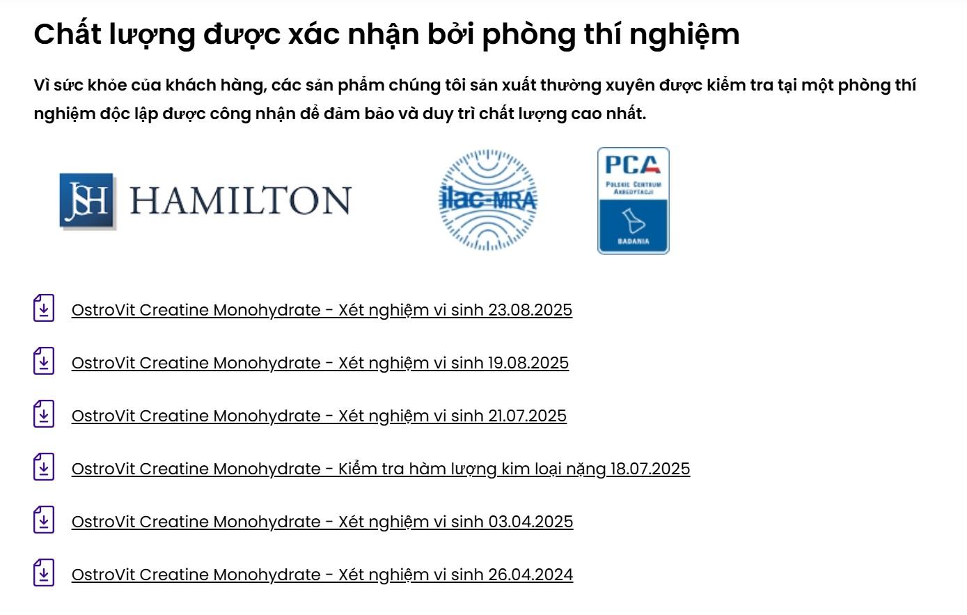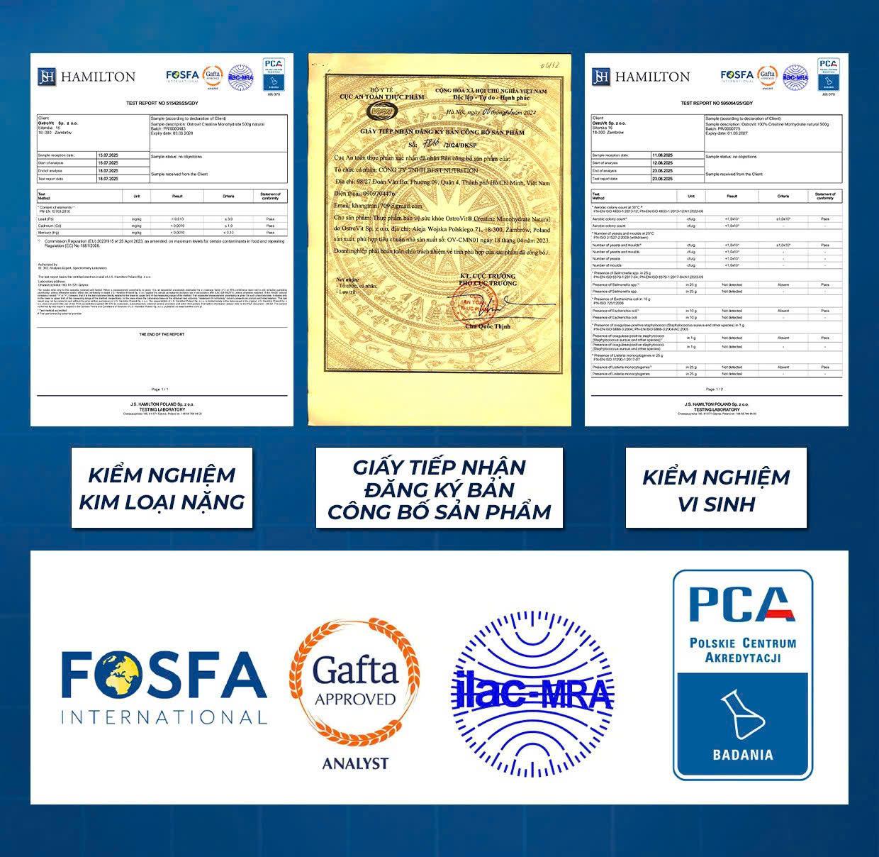 - Các hãng như OstroVit sẽ ghi thêm “of which creatine” để ghi rõ lượng creatine tinh khiết mà cơ thể bạn nhận được. Ví dụ: 3g Creatine Monohydrate cung cấp khoảng 2,64g creatine tinh khiết (phần còn lại là nước liên kết).