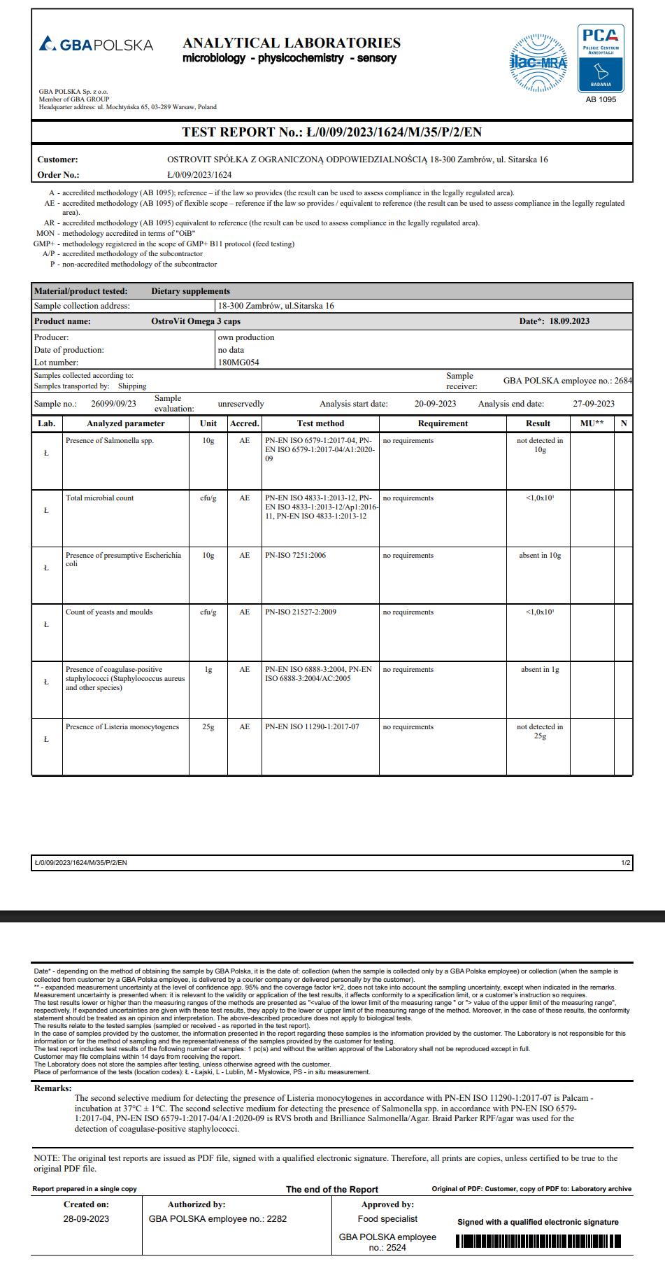 Bên cạnh HACCP, nhà máy Ostrovit đạt chứng nhận ISO 22000:2018 do tổ chức chứng nhận quốc tế độc lập cấp. ISO 22000:2018 là tiêu chuẩn quốc tế về Food Safety Management System (FSMS) – hệ thống quản lý an toàn thực phẩm, áp dụng cho toàn bộ chuỗi thực phẩm. Ostrovit đã xây dựng và vận hành hệ thống kiểm soát