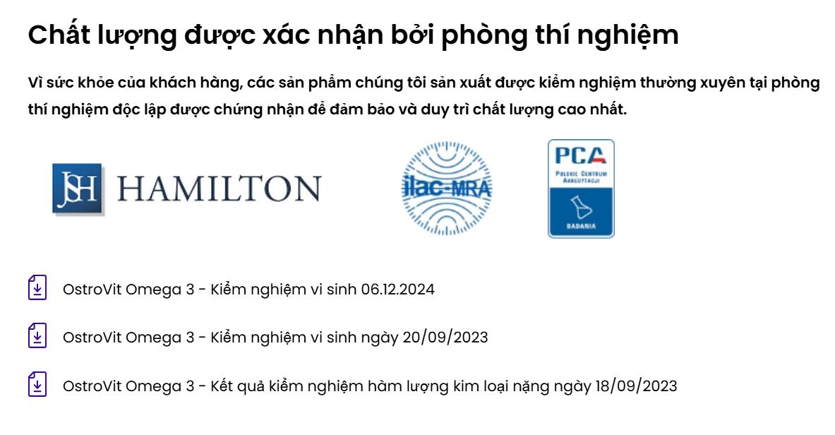 Ostrovit đạt các tiêu chuẩn chất lượng: