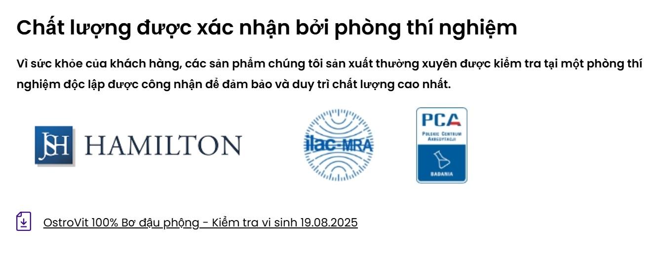 Ostrovit đạt các tiêu chuẩn chất lượng: