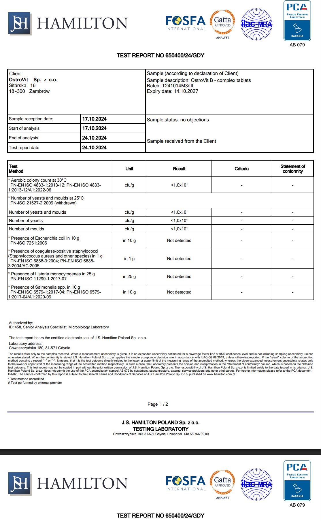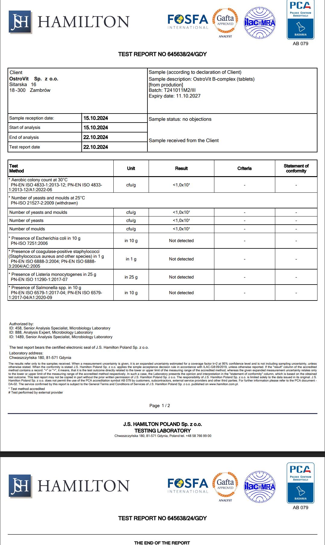. Third-party tested - Kiểm định độc lập tại phòng thử nghiệm J.S Hamilton Ba Lan, được cơ quan quốc gia PCA và tổ chức quốc tế ILAC-MRA công nhận.