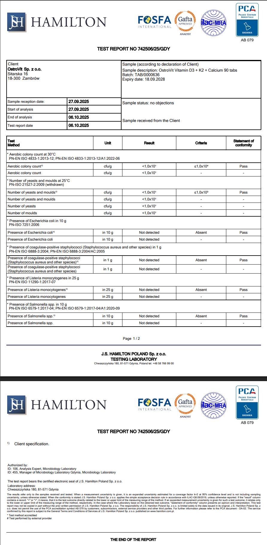 . Third-party tested - Kiểm định độc lập tại phòng thử nghiệm J.S Hamilton Ba Lan, được cơ quan quốc gia PCA và tổ chức quốc tế ILAC-MRA công nhận.